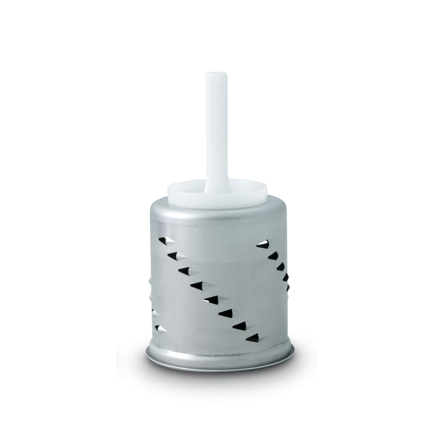 Das Zusatztrommelset für unseren KitchenAid Gemüseschneidervorsatz 62010 beinhaltet 3 Edelstahltrommeln: Nr. 4: Feine Raspeltrommel für Käse, Nüsse, Schokolade, trockene Brötchen. Nr. 5: Julienne-Raspel für Gemüse wie Sellerie, Karotten, Kohlrabi, Zucchini usw. Nr. 6: Kronenreibe für rohe oder gekochte Kartoffeln.